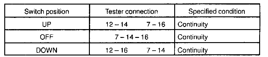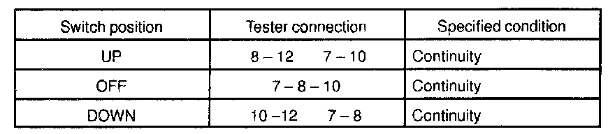 If continuity is not as specified, replace the master switch.