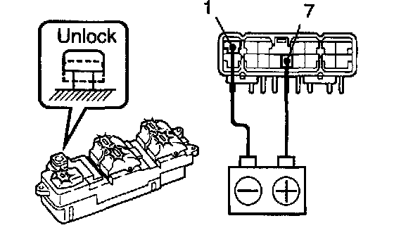 c. Set the window lock switch to the lock position, check that all the passenger's power window switch illuminations go out.