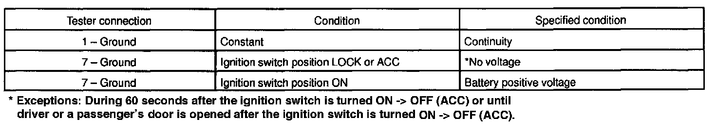 If the circuit is not as specified, inspect the circuits connected to other parts.