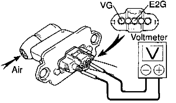 d. Using a voltmeter, connect the positive (+) tester probe to terminal VG, and negative (-) tester probe to terminal E2G.