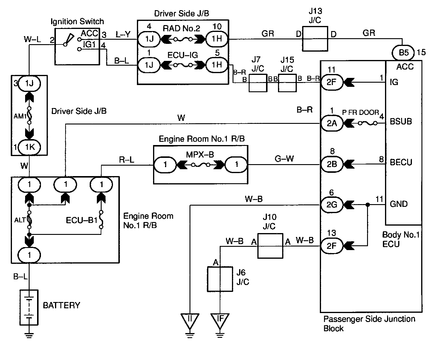 This circuit provides power to operate the body No.1 ECU.