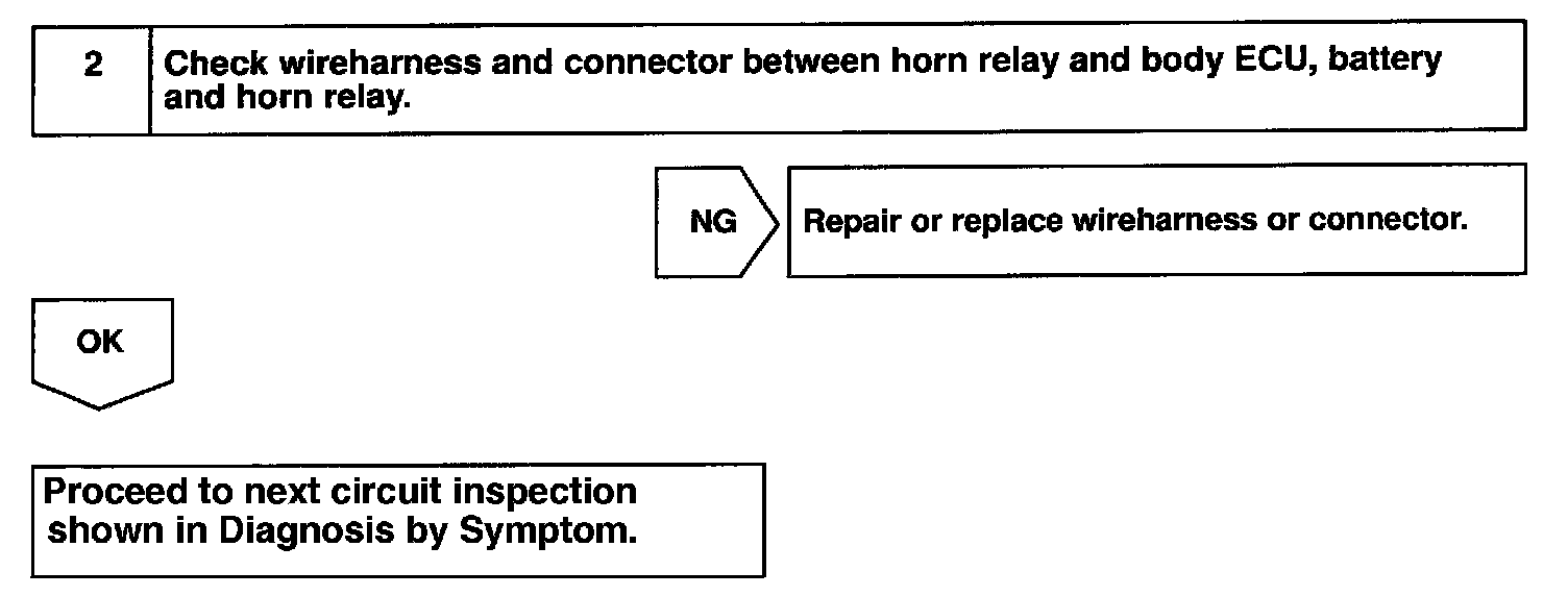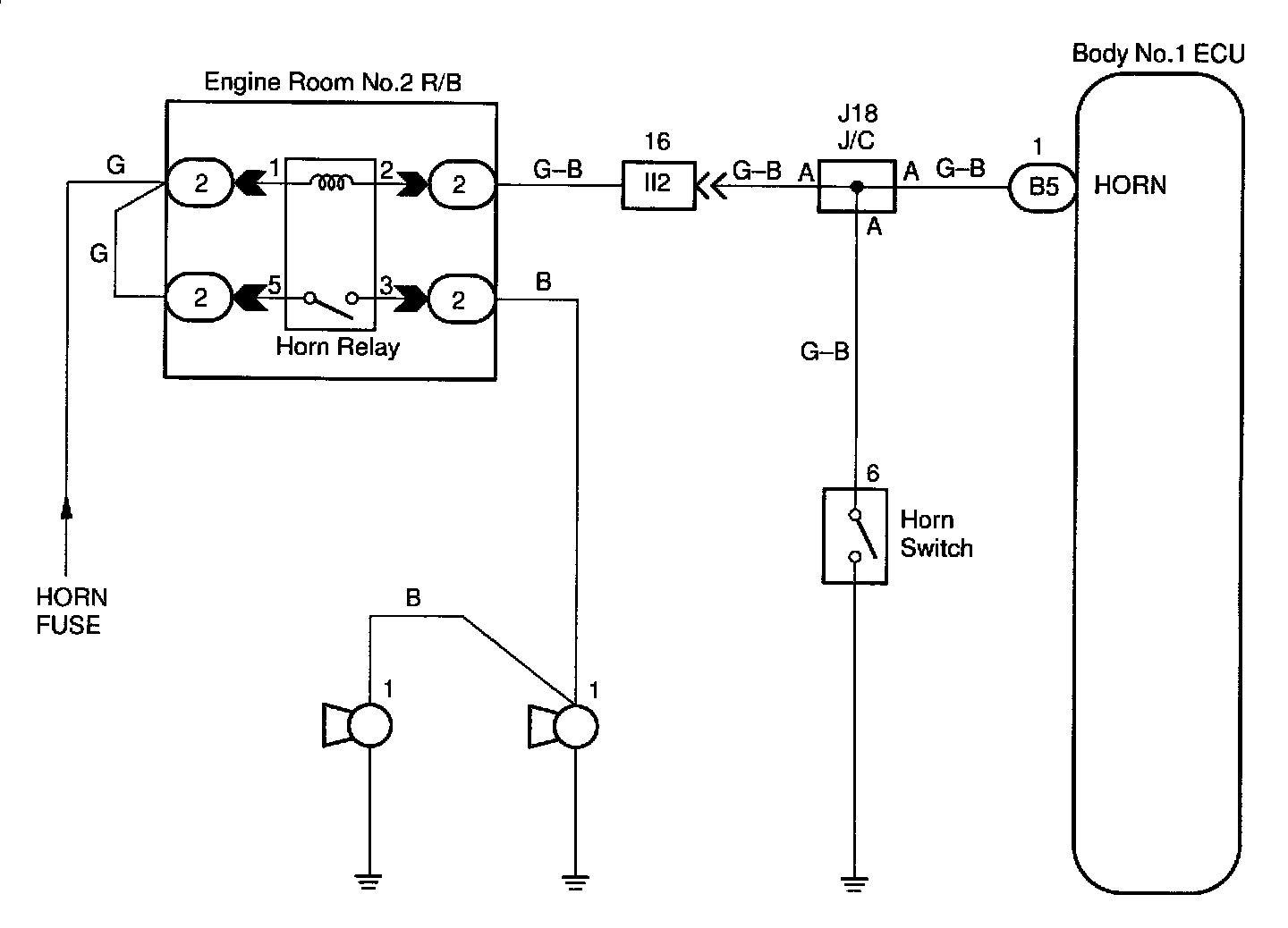 The horn is connected to the body No.1 ECU and activated by the body No.1 ECU during warning of the theft deterrent system.