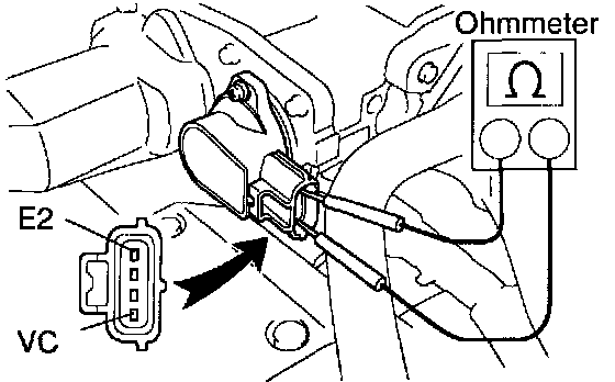 b. Using an ohmmeter, measure the resistance between terminals VC and E2.
