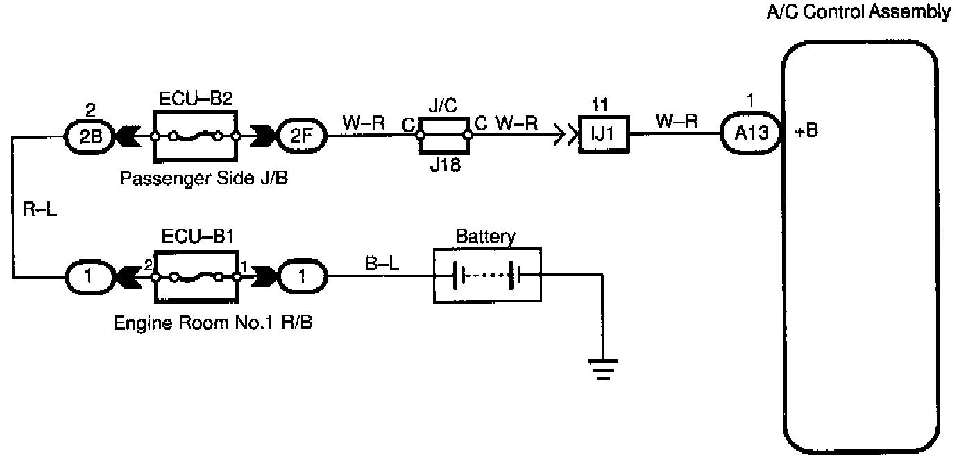 CIRCUIT DESCRIPTIONThis is the backup poser source for the A/C control assembly. Power is supplied even when the ignition switch is off and is used for diagnostic trouble code memory, etc.