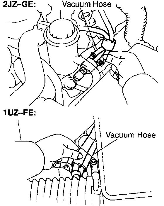 c. Check that the engine rpm decreases when the vacuum hose of the air control valve is pinched.