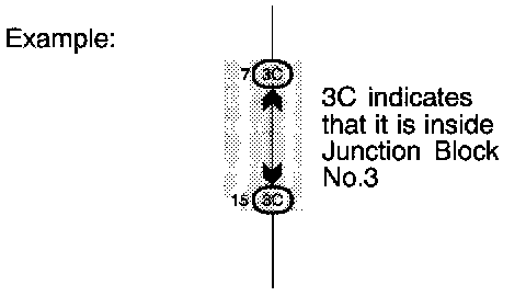 C: ( ) is used to indicate different wiring and connector, etc. when the vehicle model, engine type, or specification is different.