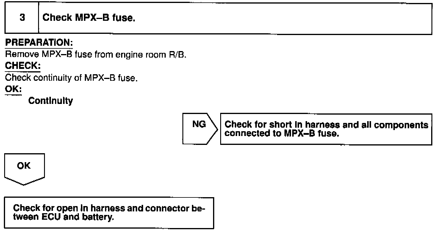 The ECU Power Source supplies power to the CPU and sensors, etc. Power is supplied to the ECU even when the ignition switch is lock position.