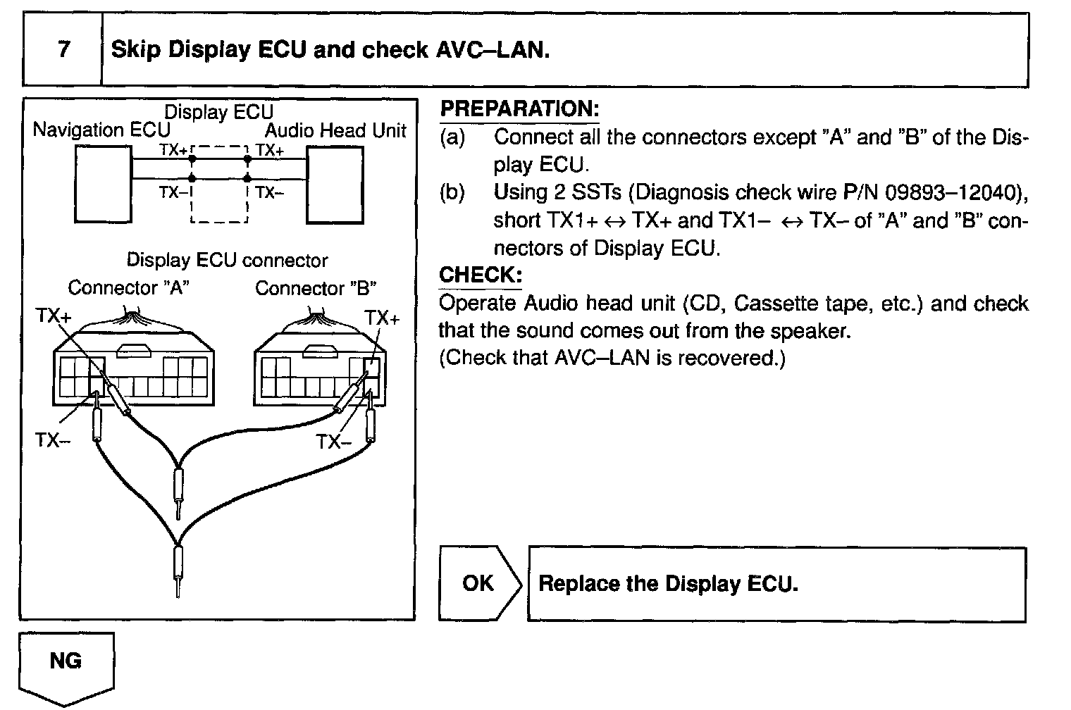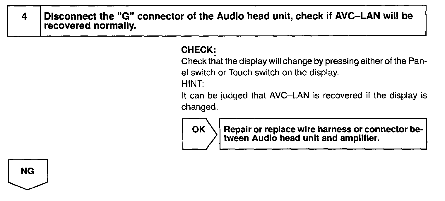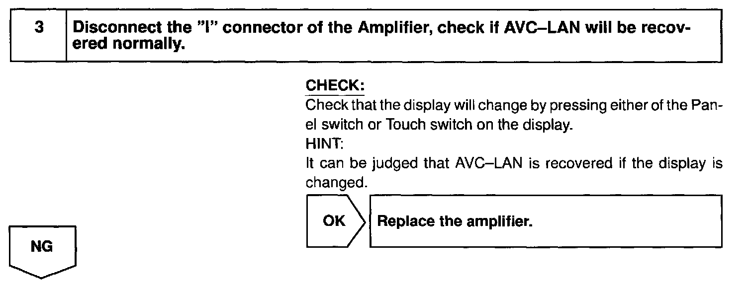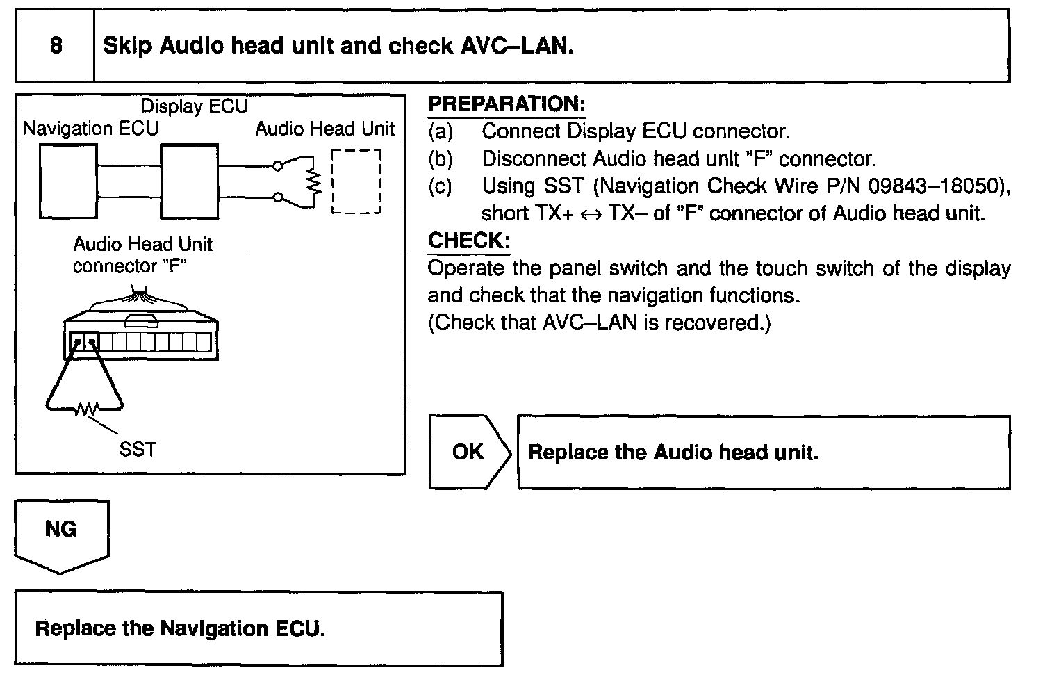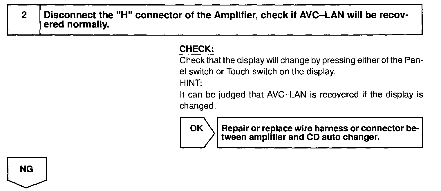 In the case that this AVC-LAN has +B short and GND, LEXUS navigation system will not function normally as the communication is discontinued.
