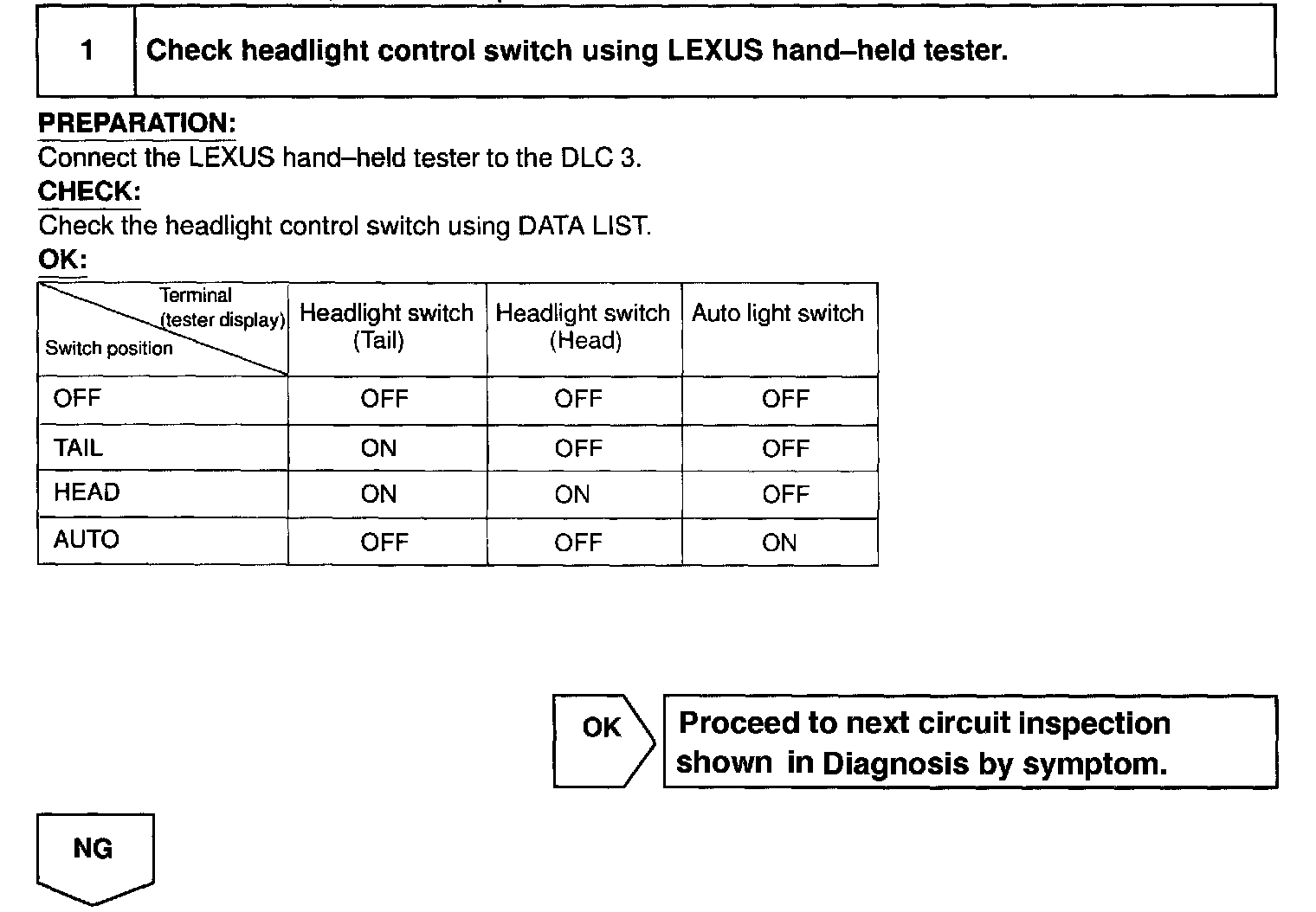 In case of using the LEXUS hand-held tester, start the inspection from step 1 and in case of not using the LEXUS hand-held tester, start from step 2.