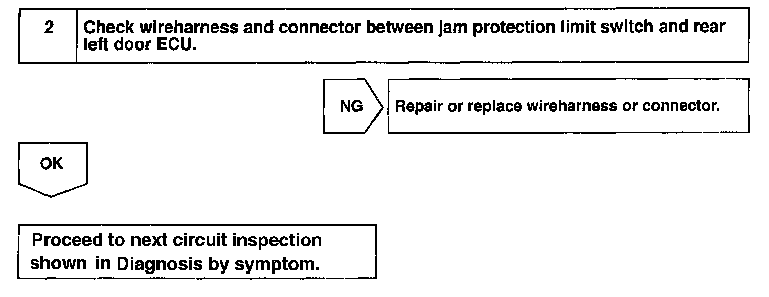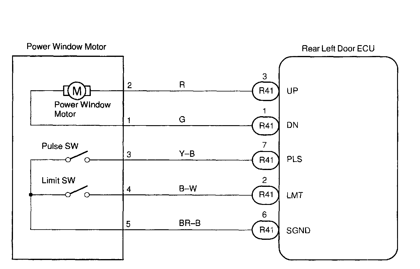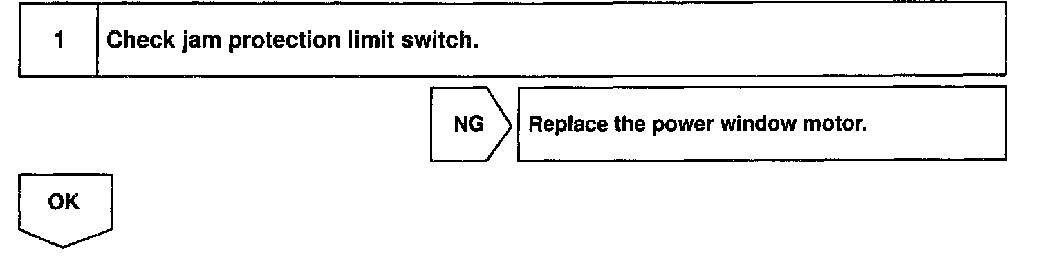 CIRCUIT DESCRIPTIONJam protection limit switch is built-in the power window motor. This switch functions to turn "OFF" before the top dead center, and ECU reads this "OFF" signal resulting in closing the window fully.