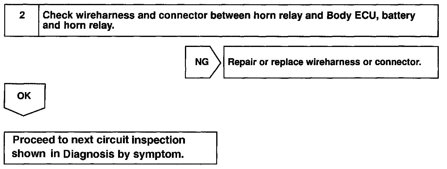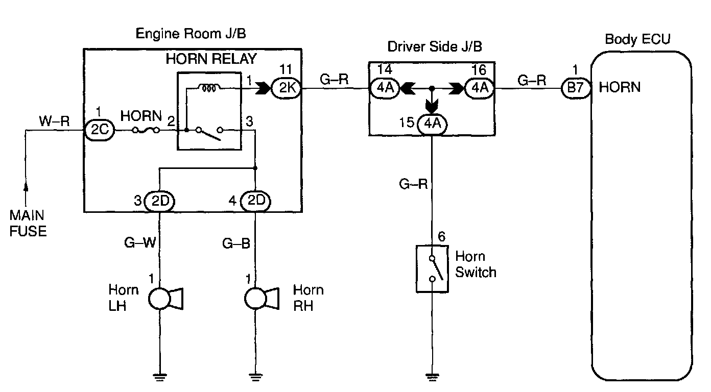 The horn is connected to the Body ECU and activated by the Body ECU during warning of the theft deterrent system.