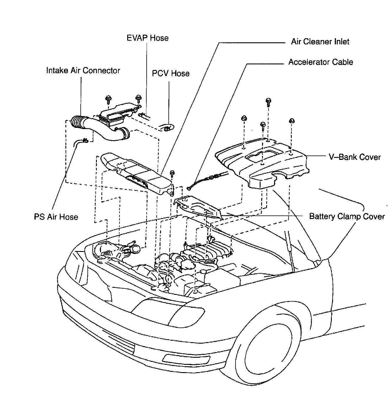 2. REMOVE BATTERY CLAMP COVER, AIR CLEANER INLET AND INTAKE AIR CONNECTOR