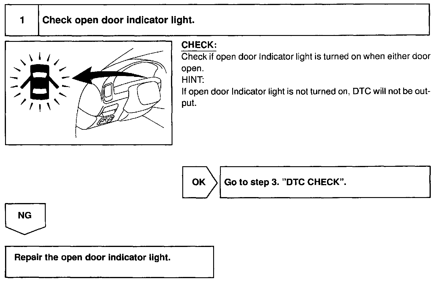 INSPECT OPEN DOOR INDICATOR LIGHT