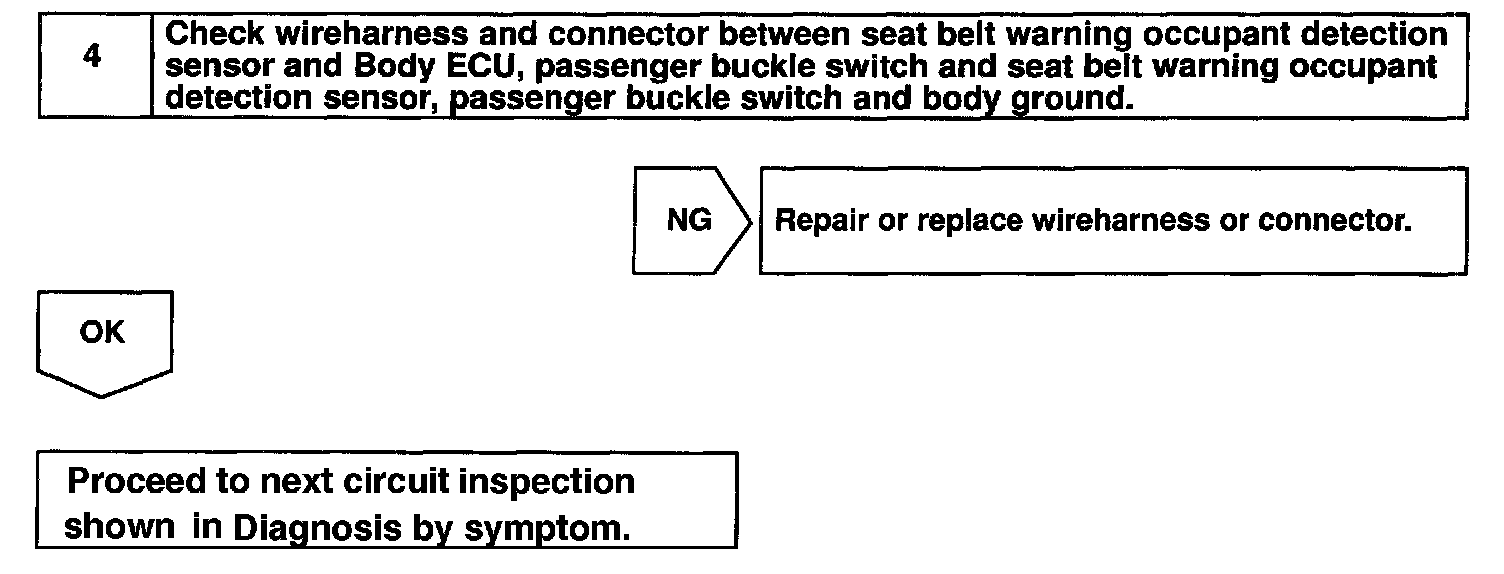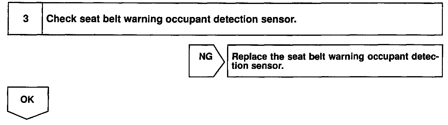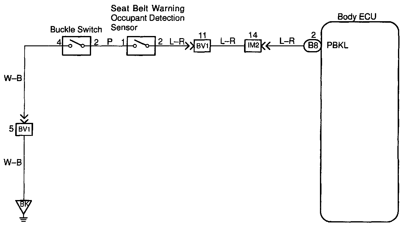 This circuit detects the conditions of the passenger buckle switch and the seat belt warning occupant detection sensor and makes the passenger seat belt warning flash.