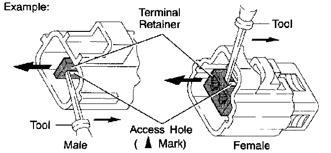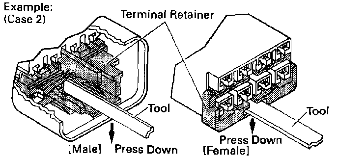 Type which cannot be pulled as far as Power Lock insert the tool straight into the access hole of terminal retainer as shown.