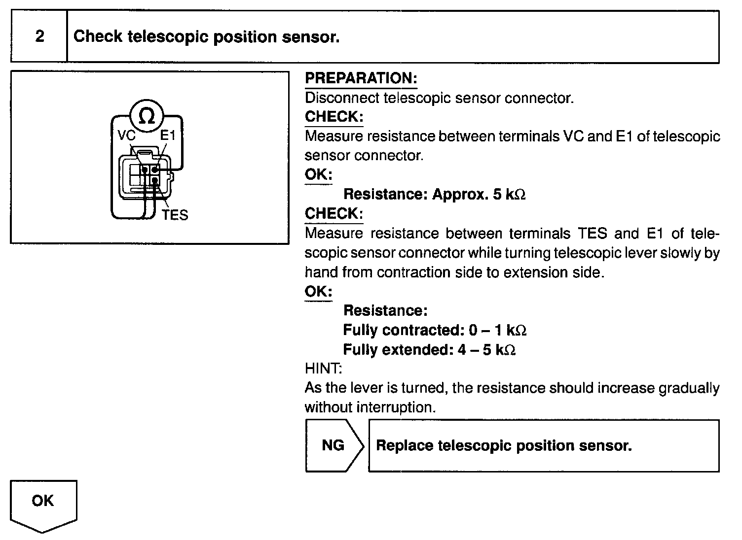 The telescopic position is sent to the ECU as a signal from the position sensor.