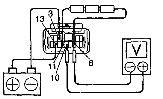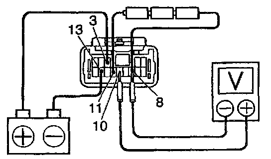 c. Connect the positive (+) lead from the voltmeter to terminal 10 and the negative (-) lead to terminal 8.