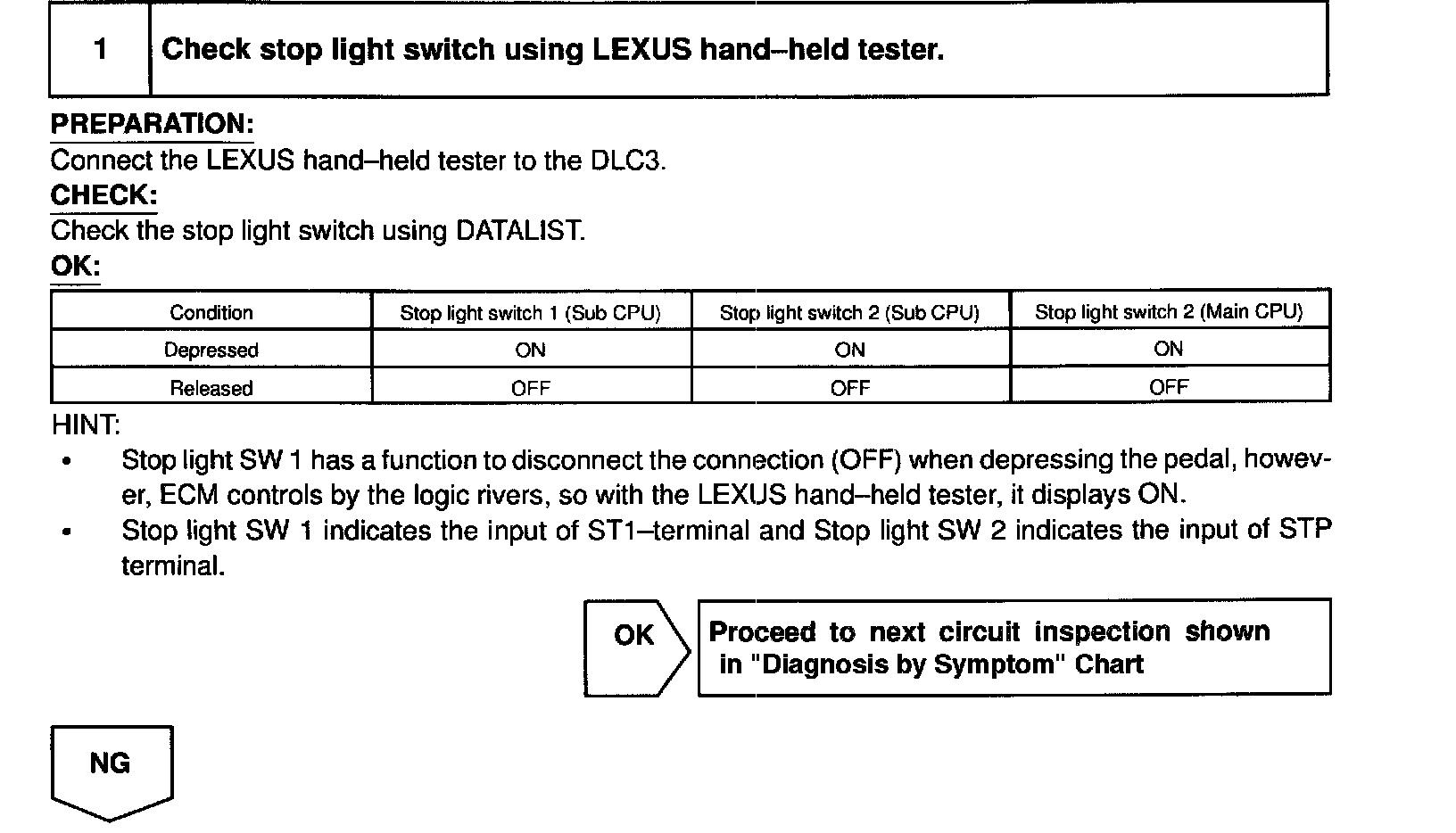 HINT: In case of using the LEXUS hand-held tester, start the inspection from step 1 and in case of not using the LEXUS hand-held tester. start from step 2.
