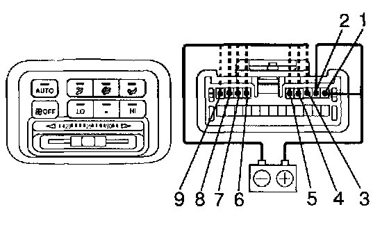 b. Gradually move the temperature control lever from "COOL" side to "WARM" side then check that the resistance between terminals 11 and 12 increase from 0 to 3.0 K Ohms.