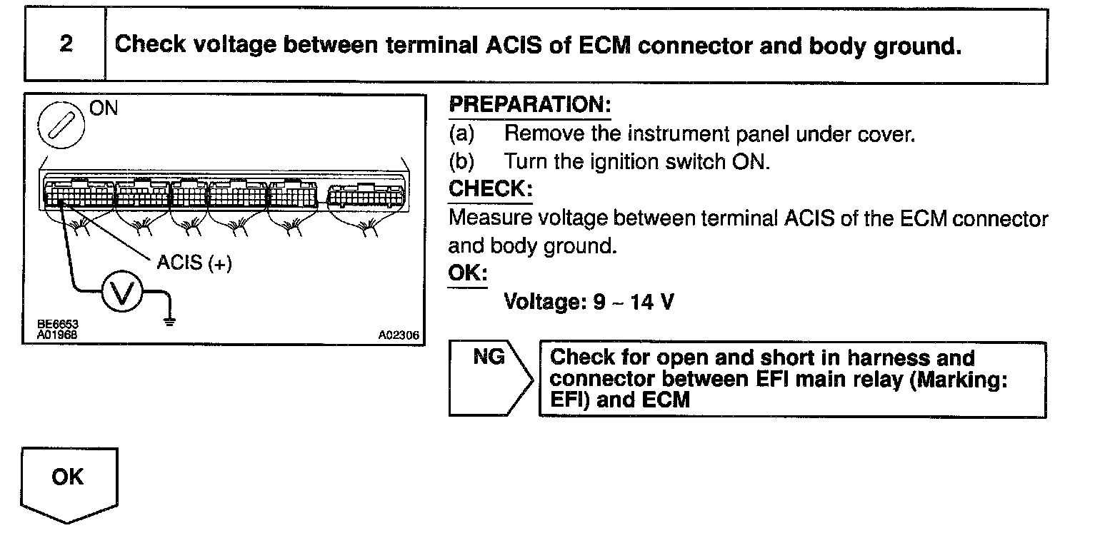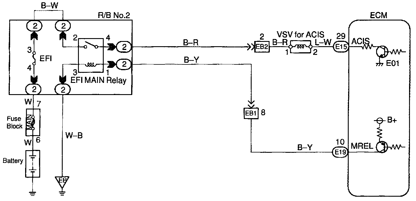 CIRCUIT DESCRIPTIONThis circuit opens and closes the Intake Air Control Valve (IACV) in response to the engine load in order to increase the intake efficiency (ACIS: Acoustic Control Induction System).