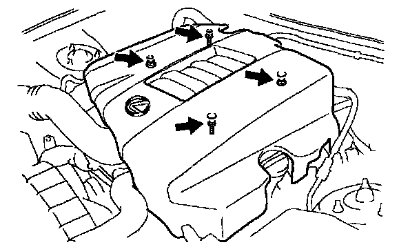 Remove the 2 cap nuts, 2 bolts and V-bank cover.