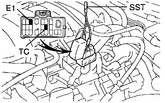 a. Using SST, connect terminals TC and E1 of the DLC1.