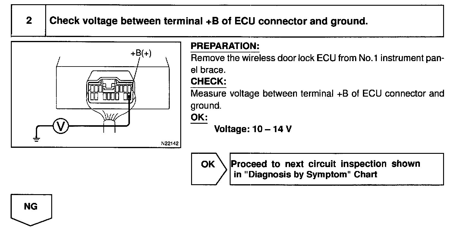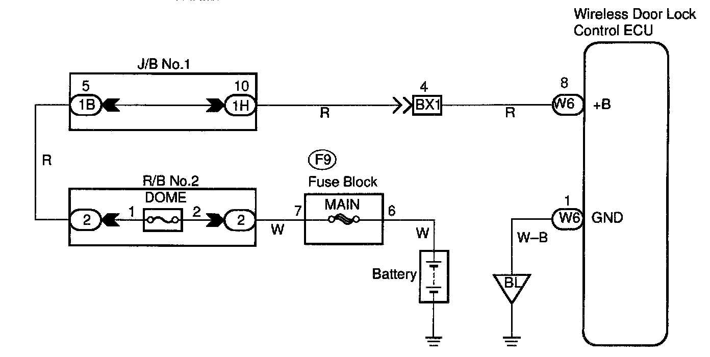 Battery positive voltage is always applied to the terminal +B of the wireless door look ECU.