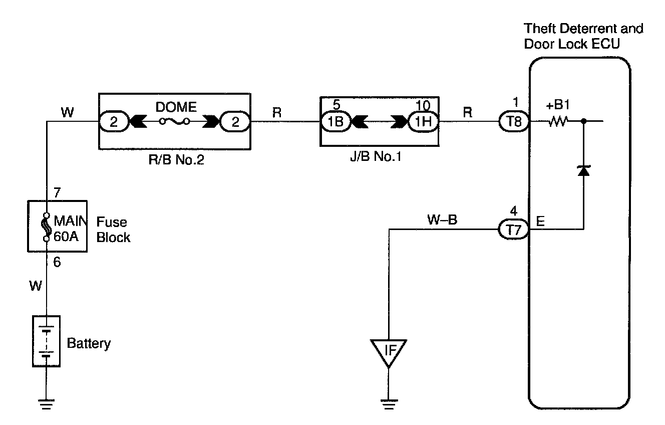 This circuit provides power to operate the theft deterrent and door lock ECU.