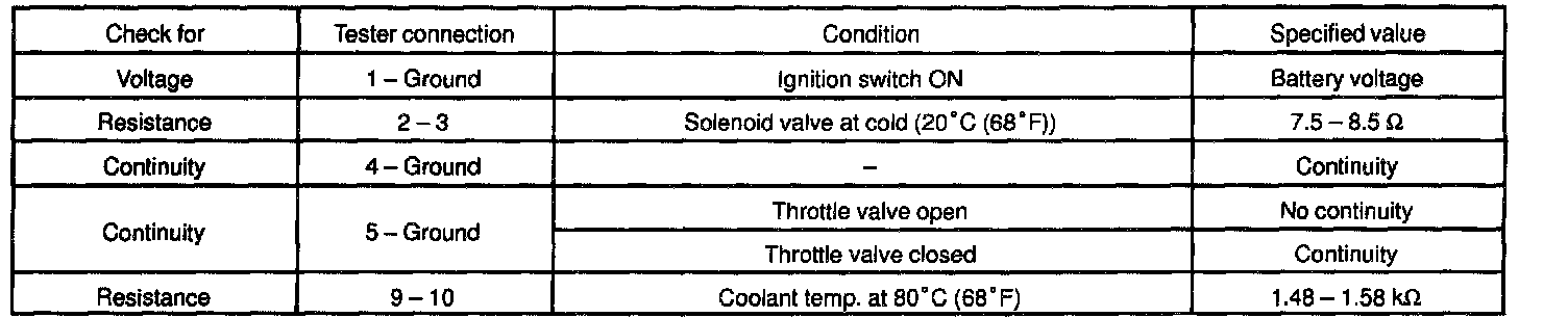 b. Check the connector on the wiring harness side as shown in the chart.