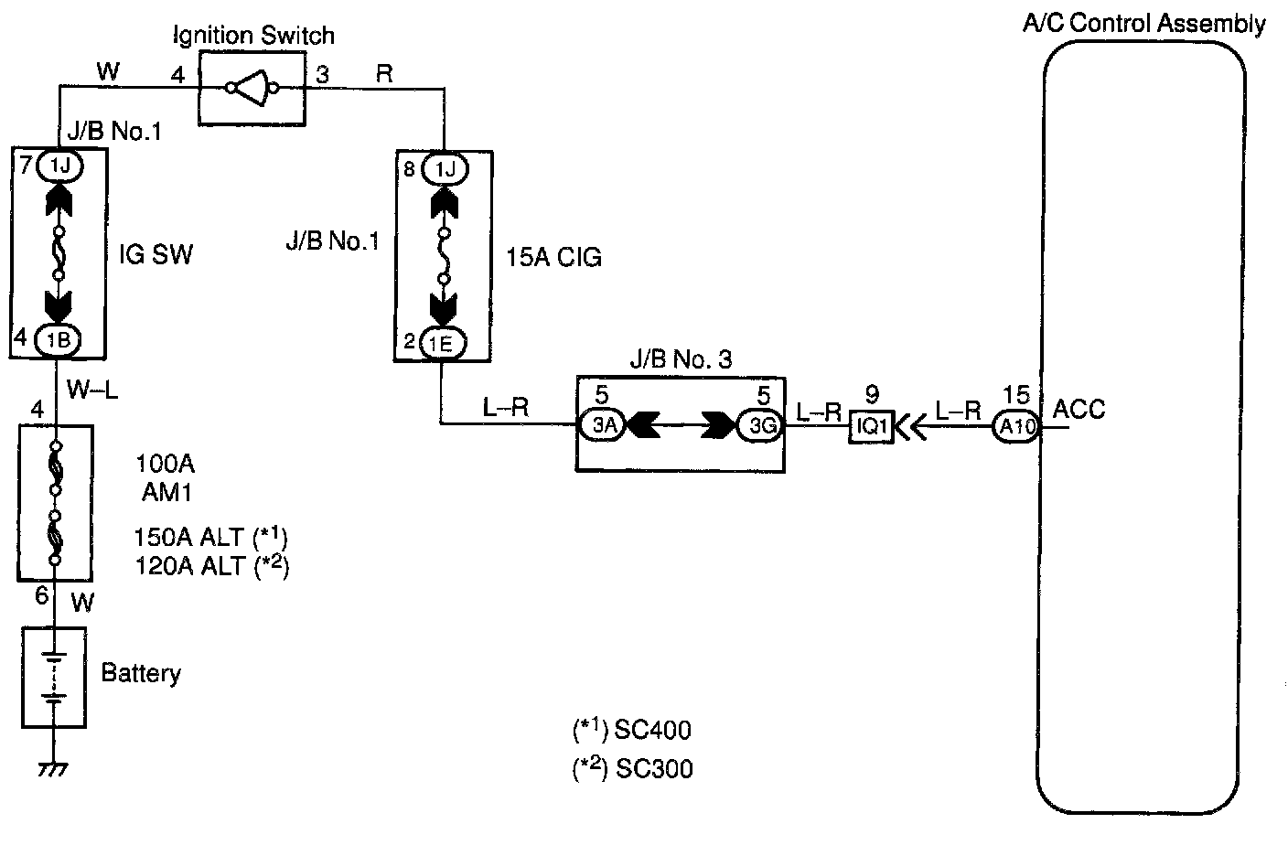 This circuit supplies power to the A/C control assembly (contains the A/C control assembly).