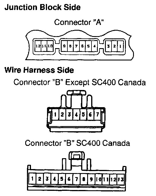 Remove the relay from the junction block and inspect the connectors on the wire harness and junction block side, as shown in the chart.