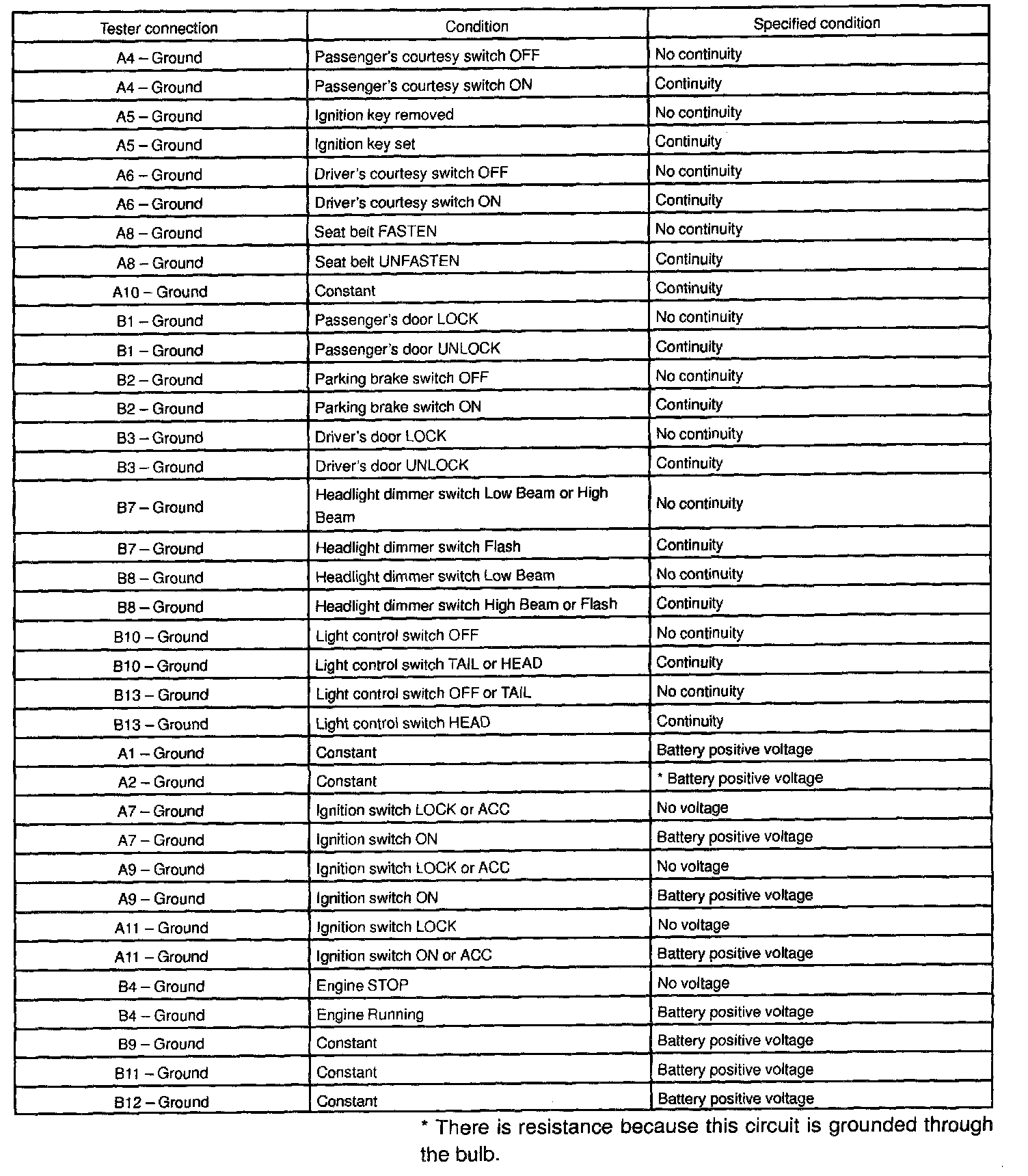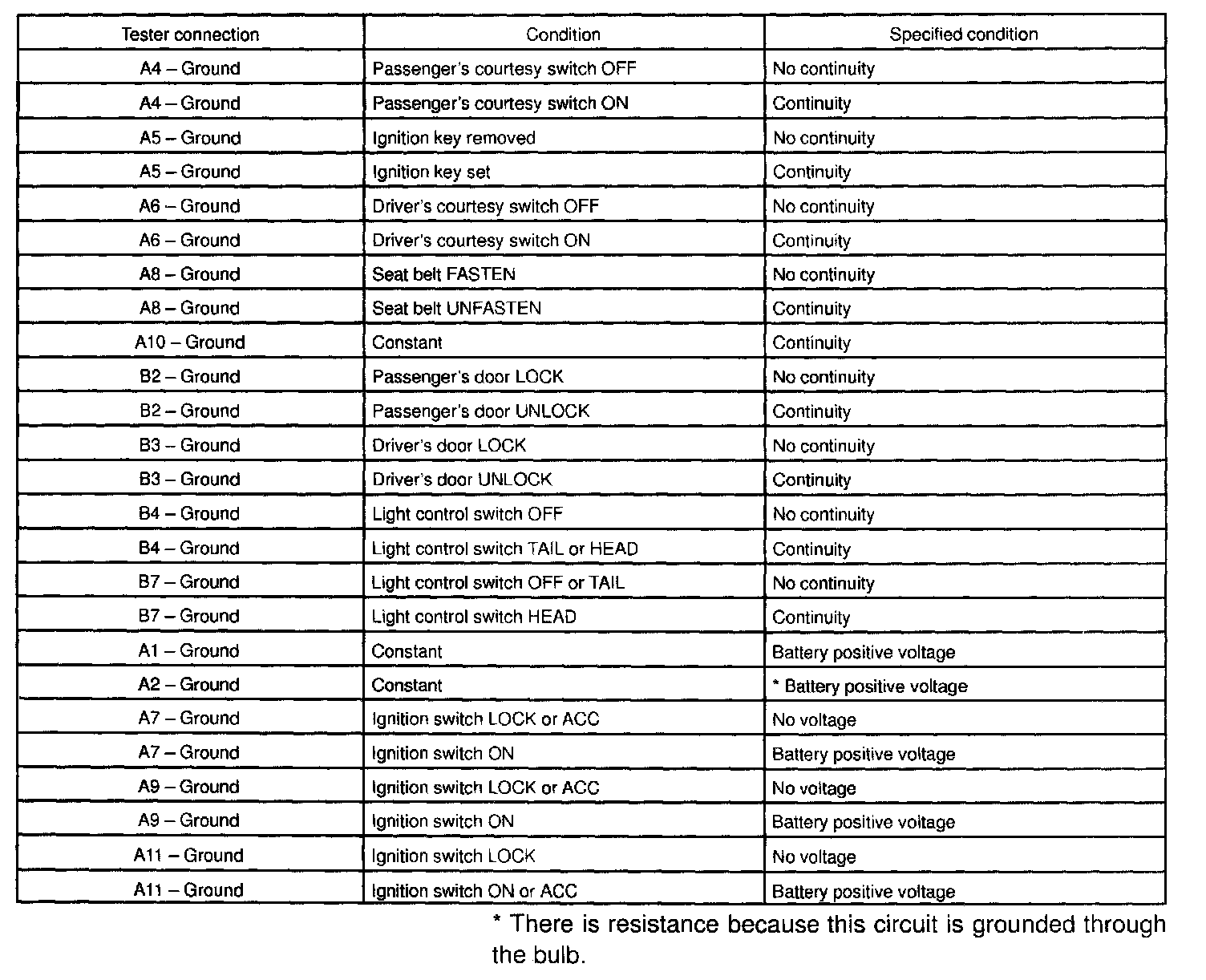 If the circuit is not as specified, inspect the circuit connected to other parts.