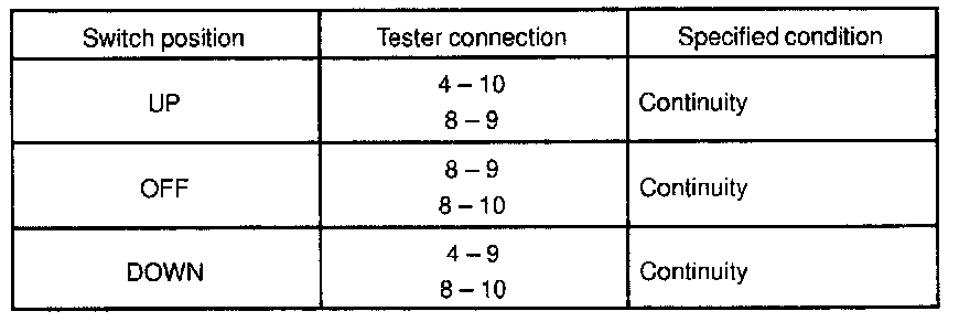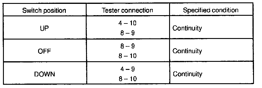 INSPECT POWER WINDOW SWITCH CONTINUITY