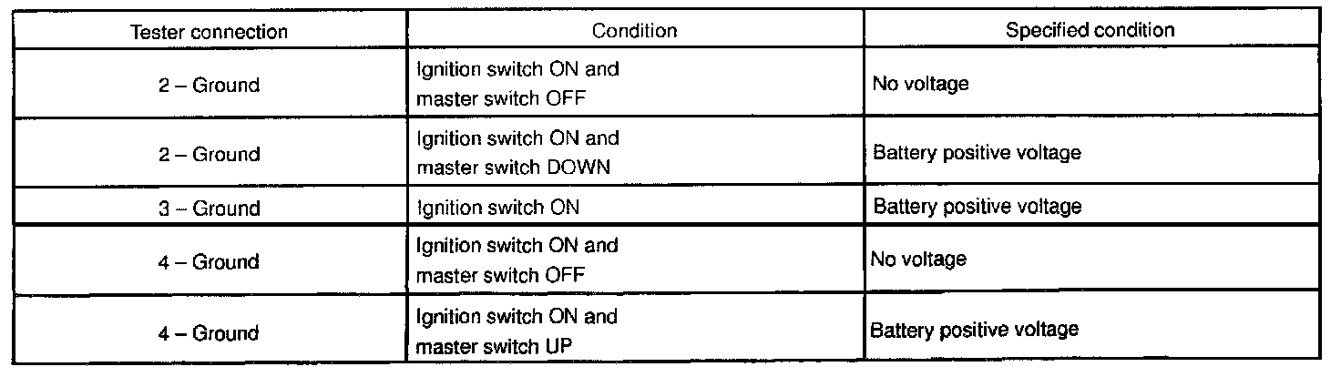 If operation is not as specified, replace the master switch.