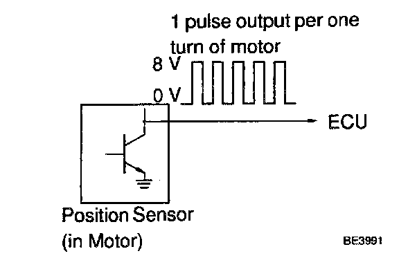 The position sensor senses movement of the seat and send pulse signals to the ECU The position sensor sends pulse to the ECU in proportion to the amount of seat movement, as shown in the diagram on the left.