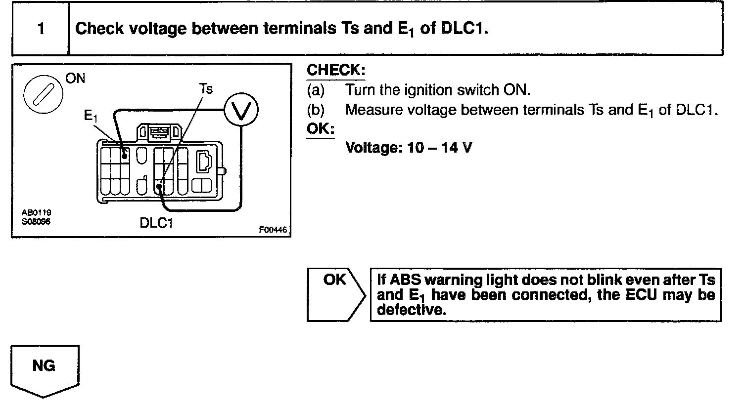 CIRCUIT DESCRIPTIONThe sensor check circuit detects abnormalities in the speed sensor signal which cannot be detected with the DTC check. Connecting terminals Ts and E1 of the DLC1 in the engine compartment starts the check.