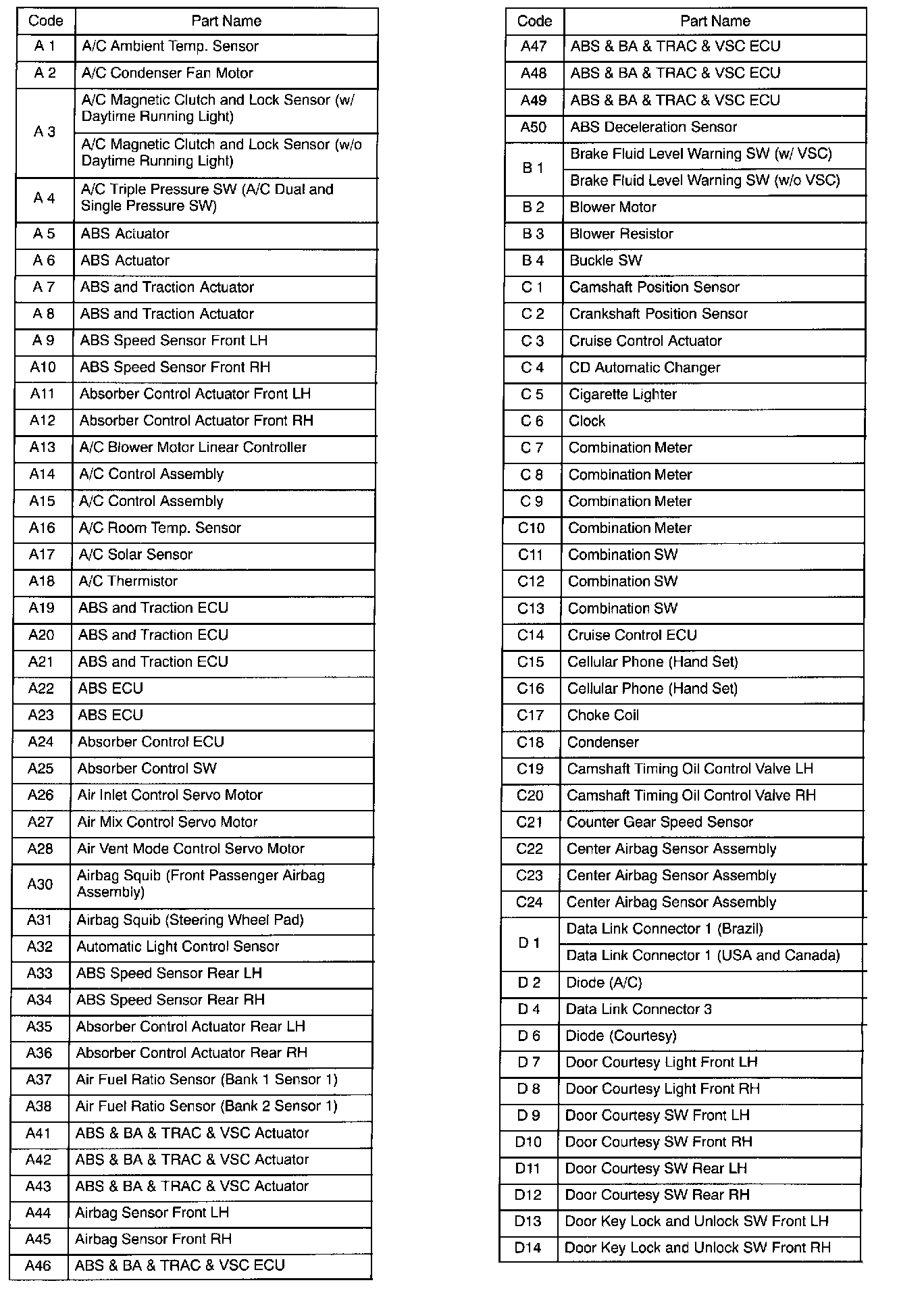 Connector Code Lists