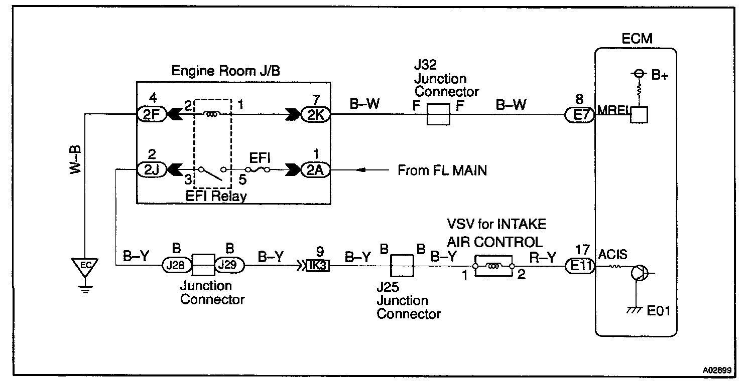 This circuit opens and closes the IACV (Intake Air Control Valve) in response to the engine load in order to increase the intake efficiency (ACIS: Acoustic Control Induction System).