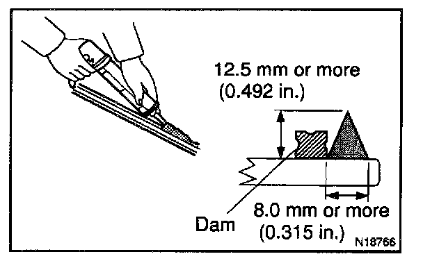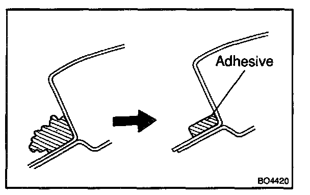 HINT: Confirm that the dam is attached to the body panel as shown in the illustration.