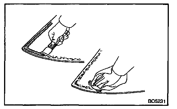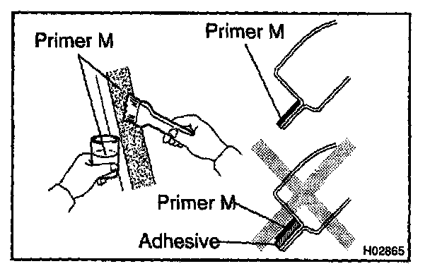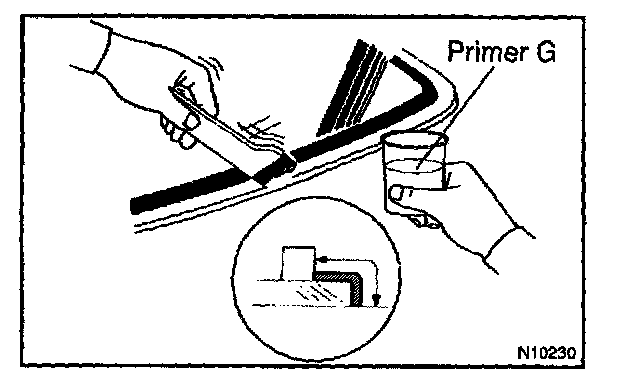 a. Using a brush or a sponge, coat the edge of the glass and the contact surface with Primer G.