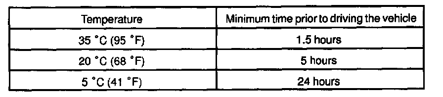 NOTE: Take care not to drive the vehicle during the time described in the table.