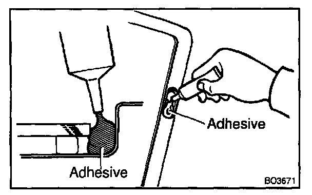 d. Hold the glass in place securely with a protective tape or equivalent until the adhesive hardened.