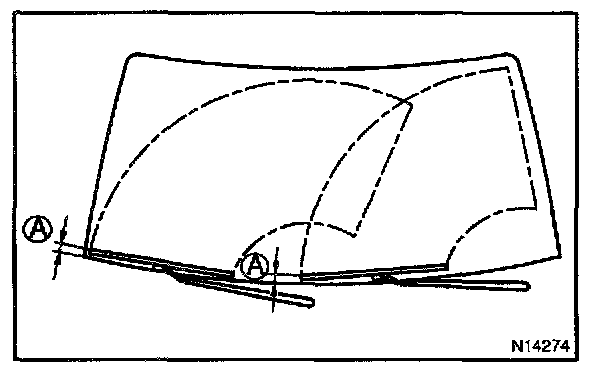 c. Adjust the wiper arm and brade assemblies to the positions shown in the illustration.