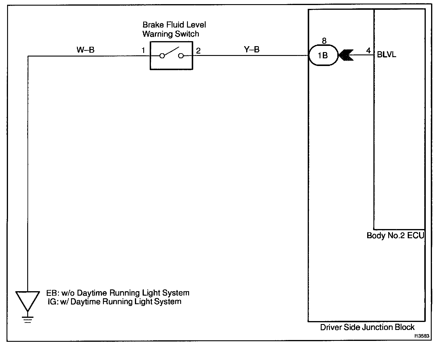 Brake Fluid Level Warning Switch Circuit / Body No.2 ECU