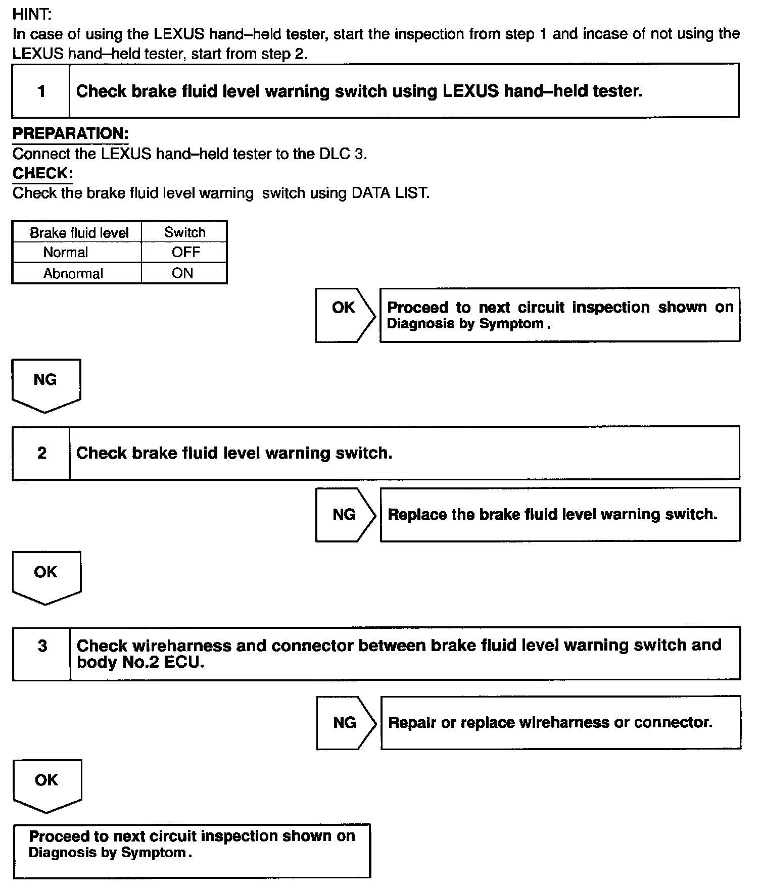 INSPECT BRAKE FLUID LEVEL WARNING SWITCH CONTINUITY