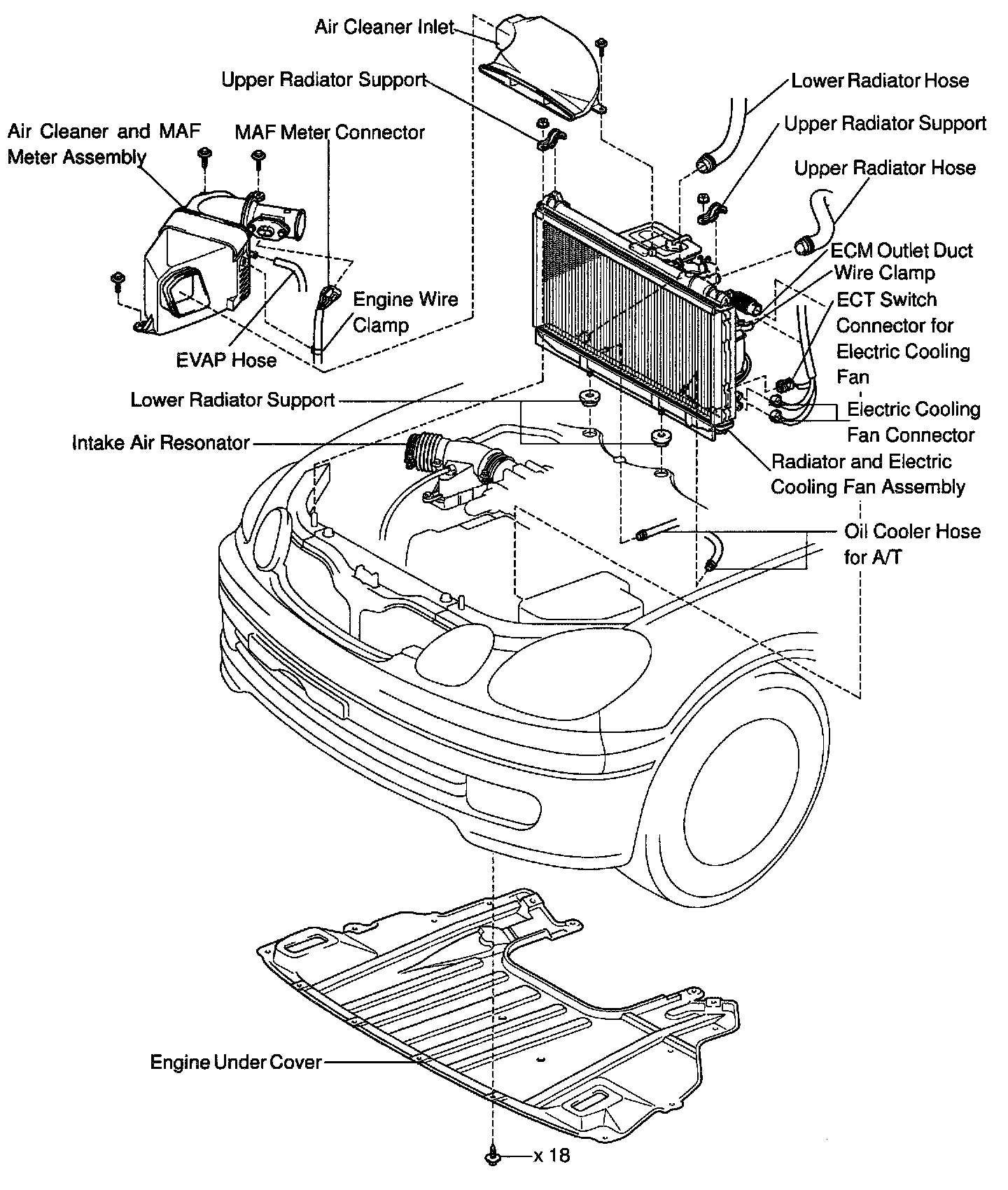 Radiator, Cooling Fans Assb, Reservoir Hose: