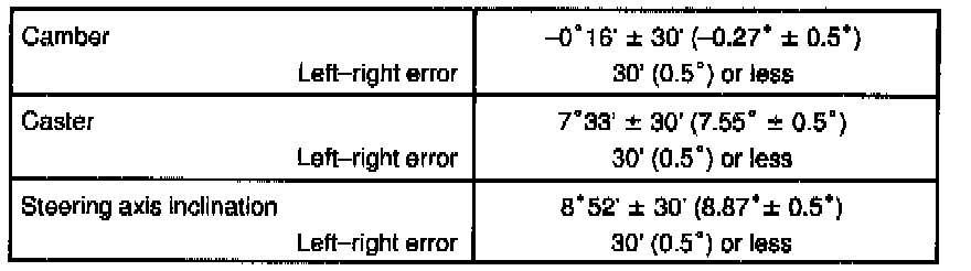 HINT: After adjusting the camber, inspect the caster and toe-in. Try adjusting the camber to the center value of the specification.
