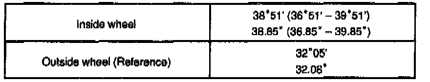 Turn the steering wheel fully, and measure the turning angle.
