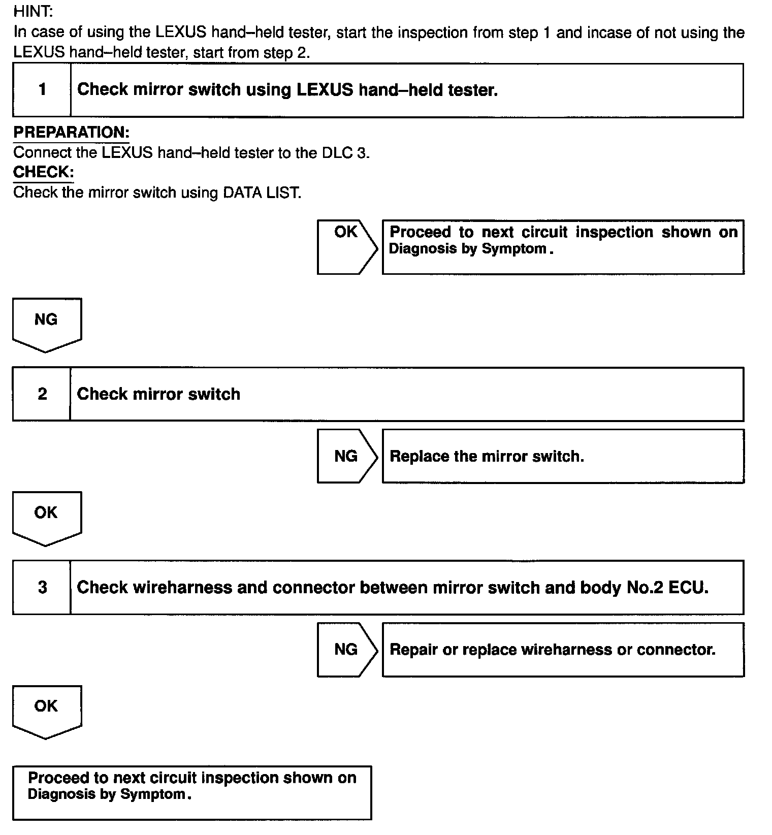 This circuit detects the conditions of the mirror selection switch and the mirror position switch.