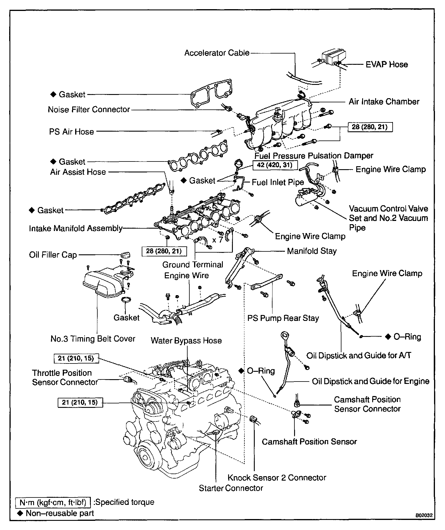 j. Remove the 3 nuts, and disconnect the engine wire protector from the intake manifold.